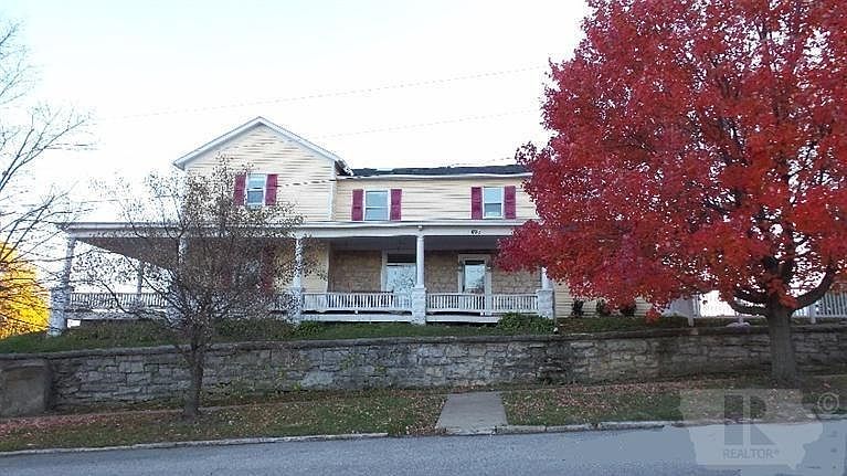 A unique home for a unique owner: Pre-Civil War stone barn at the center of a wandering floor plan which culminates in a new breakfast room and a 3-car attached garage. Plentiful south-facing windows provide generous daylight and solar warmth. Sits high on a double-lot with views of nearby downtown and the Mississippi River. 3 bedroom, 3 bath, large kitchen with 90 year old cast iron and porcelain double sink. One fenced in yard, one larger open yard, 40 foot wraparound porch and seven lilac bushes.