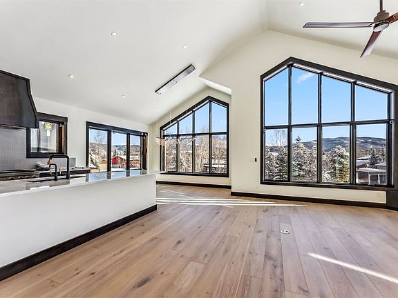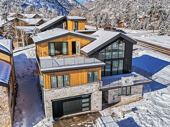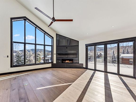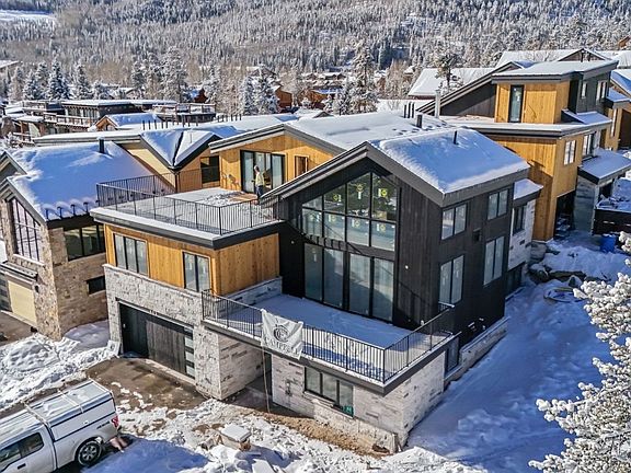 Welcome to the third and largest residence available at Vantage Point Homes, where luxury design meets contemporary relaxation in a prime location. This top-of-the-line new construction duplex is equipped to be the ultimate escape for rejuvenation and convenient mountain living. Entertain guests from an expansive great room with a soaring stone fireplace and floor-to-ceiling windows with mountain views. Cook dinner in a chef’s kitchen with integrated Monogram appliances, dual dishwashers, under-counter microwave, Wolf gas range with dual ovens, and a large island for casual dining. The primary suite is a personal sanctuary, filled with natural light and a spa-like ensuite bathroom equipped with a steam shower, a soaking tub, and bidet. Four additional guest rooms, including a ground-level junior primary suite with ensuite bath, are spread out amongst the floors, providing privacy and comfort. Each level offers a social gathering space, notably the large lower-level rec room with fireplace. Serene outdoor areas feature space for dining, a modern gas fire pit, rooftop sauna, and plumbing for a private hot tub while taking in the majestic mountain scenery. The heated, three-car garage opens to a built-out mudroom, while winter ease is offered from heated exterior walkways. This new construction home is green-rated and solar conduits are ready for easy panel installation. Walk to countless hiking and biking trails, dining and shopping on Frisco Main Street, and Lake Dillon less than half a mile away, or ski at Breckenridge, Copper Mountain, or Keystone within 15 minutes. These Vantage Point Homes duplexes are strategically designed to have a private driveway and entry. Your ultra-luxe, new construction awaits in Frisco, CO, inquire for more details! Est completion Jan 2025.