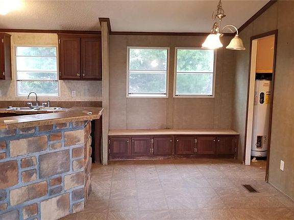 The 3 bedroom, 2 bathroom mobile home in Weatherford is awaiting new owners to come and give this home the updates needed. Quiet location on 1 acre. The floor plan is spacious and has plenty of room for anyone family member. The large kitchen is has a large island for work space. The dining area has seating built in. There is a large soaking tub and stand alone shower and double vanity in the master bedroom. Come see how this home could become yours.