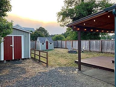 - Exterior features: Heating system: Forced Air, Large detached storage shed