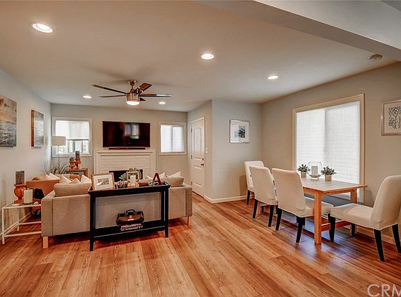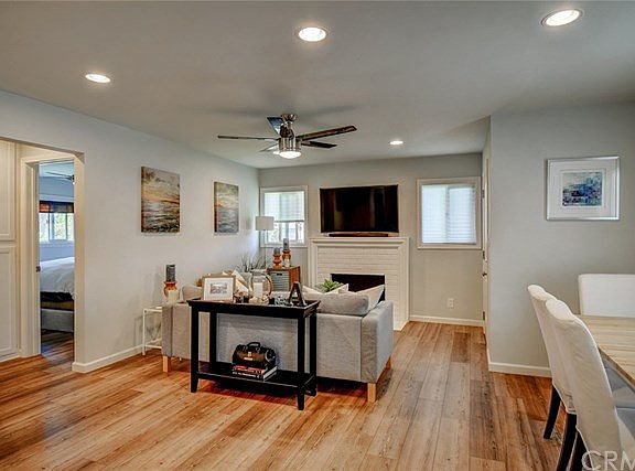 The work has already been done, simply turn the key and move into this beautifully upgraded single story home, on a corner lot. This home features new tile wood flooring and baseboards, self-closing cabinets, windows, recessed lights, doors/jams/hardware, ceiling fans, bathroom with subway tiles and marble flooring. Open floor plan includes a gourmet kitchen with carrara marble counters, new stainless steel appliances, and island with gas range and breakfast seating for three. Bright kitchen opens to family/dining room area, forming the ultimate entertainment experience. Imagine cooking with family and friends while enjoy a fireside movie, and plenty of space at the dining room table for all to enjoy. Head outside and extend your living space, sit under a shady tree while barbecuing, music playing, and party lights, in your over sized private yard with fruit tree and flower garden. Ideally located near Chapman University, Main Place Mall, restaurants, CHOC and St. Joseph hospital, bike paths, and so much more.