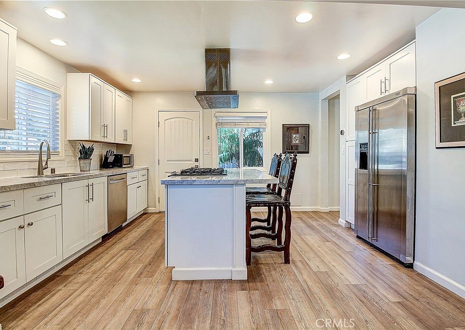This Adorable Three Bedroom Single-Story Home Is Situated On A Corner Lot. This Home Features Laminate Wood Flooring Throughout, Upgraded Baseboards, Shaker-Style Self-Closing Cabinets, Recessed Lights, Ceiling Fans, Bathroom With Subway Tiles, And Marble Flooring. Open Floor Plan Includes A Gourmet Kitchen With Carrara Marble Counters, Stainless Steel Appliances, And An Island With A gas Range And Breakfast Seating For Three. Bright Kitchen Opens To family/Dining Room Area, Forming The Ultimate Entertainment Experience. Imagine Cooking With Family And Friends While Enjoying A Fireside Movie, And Plenty Of Space At The Dining Room Table For All To Enjoy. Head Outside And Extend Your Living Space, Sit Under A Shady Tree While Barbecuing Listening to Music And Unwind After Your Day ! Ideally located near Orange Circle, Chapman University, Main Place Mall, Restaurants, CHOC and St. Joseph hospital, Bike Paths, And So Much More. Also, The AC Unit Is Approximately 3 Yrs Old.