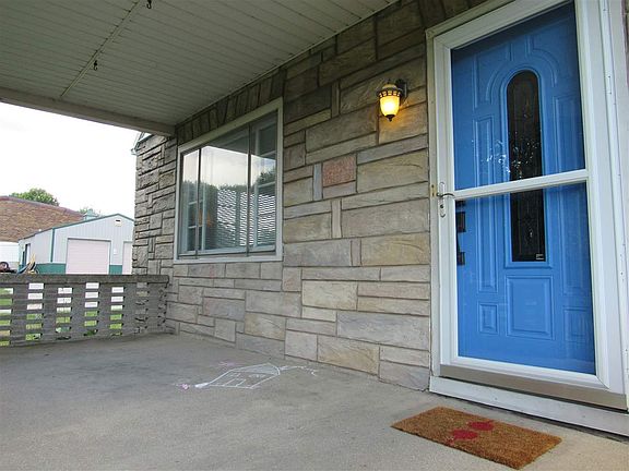 Three bedroom home with beautiful park-like setting with the town park right off your own back yard! You will love the spacious living room with large windows and built-in shelving, door with antique door knobs, original wood flooring in part of the home, kitchen with appliances, and the detached over-sized 2 car garage! There is also a partial basement with an additional half bath, water pump and a well. The front porch offers a great view of the front yard and orchard! Enjoy your own piece of country right on the outskirts of town!