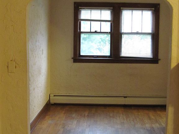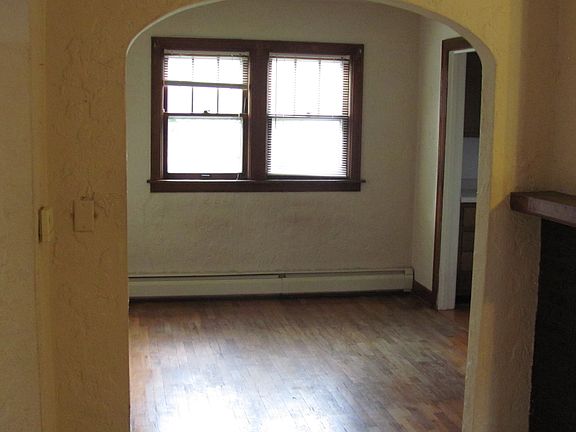 Great starter home! Cozy 2 bedroom, 2 bathroom brick home with original hardwood floors. 6 wood trimmed windows in the living room allows for ample natural lighting. Textured plaster walls and archways, fireplace, boiler heating, and central air makes this vintage home charming and comfortable! Also has full basement which provides plenty of room for storage and a partially fenced spacious backyard. Located in a quiet, scenic, established neighborhood.