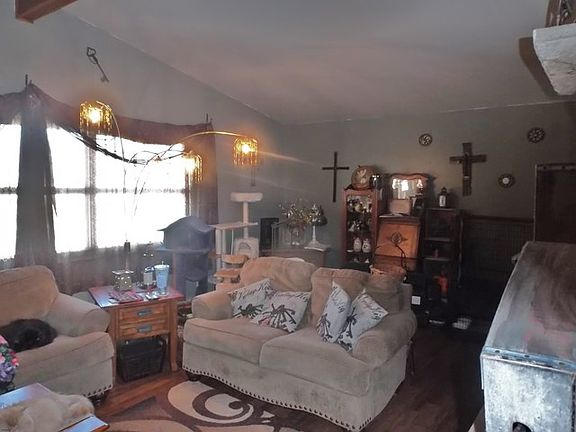 Here a home with lots of room - 5 bedrooms & 3 bathrooms. Kitchens both upstairs and downstairs. Living room with vaulted ceiling & attractive brick fireplace. Large and cozy downstairs family room also with fireplace. New flooring & lighting fixtures upstairs plus all new attractive appliances, all done in late 2016. Beautiful wrap-around porch and home located on a corner lot. See it soon!