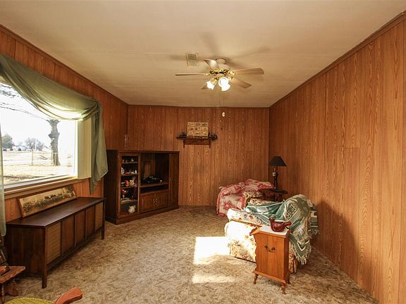 Situated at the foot of Elkhart Hill in historic Elkhart, Illinois on a double 80X150 lot with breathtaking views of wildlife and the picturesque wide open Central Illinois rolling countryside, you will find this darling nearly 1,400 square foot aluminum sided ranch style home that has been well loved by the same family since originally constructed in 1953. Current owner loves Elkhart and has written two books on said village -- how neat! Interior features an inviting 9X13 sunporch, generous living room, formal dining room with charming built-ins, gorgeous fully renovated equipped eat-in kitchen with engineered hardwood flooring and granite tile countertops, centrally located mechanical room area, rustic rear family room/den with adjacent laundry facilities as well as additional built-ins, two bedrooms -- one with two closets (second bedroom does not currently have a closet), and a full hall bath. Property also features an attached garage with attached storage/work room area in addition to rear alley access, freshly painted aluminum sided exterior, roof (2014) -- part of roof is a flat roof, various vinyl replacement windows throughout, generous side patio, newer water heater, newer Carrier furnace, added attic insulation (super efficient home!), updated ductwork in attic (2012), and all appliances to remain upon settlement for new owner(s) including washer and dryer. City water -- private septic system on premises. Property is located on two parcels and is being sold "AS IS, WHERE IS." Affordable small town living situated between Lincoln and Springfield with convenient interstate access can be yours with 405 S. Gillett Street, Elkhart -- call your real estate professional today! Note -- additional photographs to come.