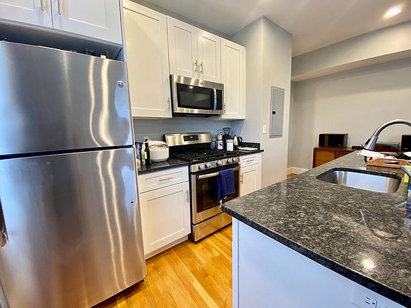 Available 7/1/25. Pet friendly 2 bed with 2 baths with laundry in unit and Central A/C. The unit features high ceilings throughout, amazing sunlight, granite counter tops with island, stainless steel appliances, washer and dryer in unit, central air conditioning. This place definitely feels like more like a home than an apartment. Private storage in basement. Easy street parking, walk to the Pond, Whole Foods, Angel, Longwood, Brookline Village, and Orange and Green Line Trains. Pets ok with $50 pet rent. Move in costs are 1st, last, and broker. 12 month lease Tenants pay gas and electricity Water, sewer, trash are included Easy street parking no permit needed Pet Friendly Private Locked Storage in the basement Laundry in Unit Central A/C