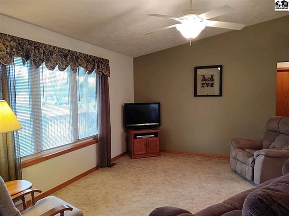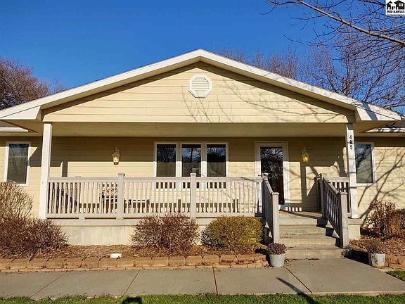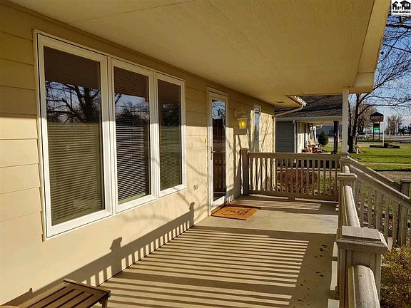 Fantastic open floor plan on this one owner, Goertzen built home! You are sure to enjoy the warm evenings from your covered front porch. Step inside to the open living/dining/kitchen with vaulted ceilings, excellent lighting, and storage galore! The master bedroom with adjoining en suite is spacious and includes a shower, huge vanity, corner garden tub, and walk-in closet. The main floor also features another bedroom, full bathroom, and laundry room. In the basement, you'll find an office with escape window and built-in Oak cabinets that could easily be converted to another bedroom. A family room with rustic charm has french doors, dimmer lights, and an antique barn door that leads to the mechanical room and storage area. The 3rd bedroom in the basement also has an escape window, built-in coffee/snack bar area, and attached bathroom. Step out the new door in the dining room to enjoy the spacious backyard with patio, windmill, landscaping, storage shed with attached dog pen, and grain bin turned bar! This unique grain bin has a concrete countertop bar, plumbed in sink, and plenty of room for a refrigerator and pub table. It's ready to make your next party one that won't soon be forgotten!