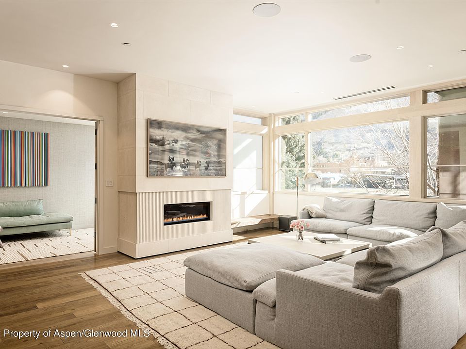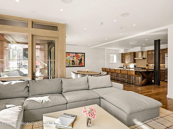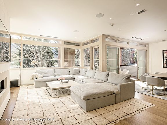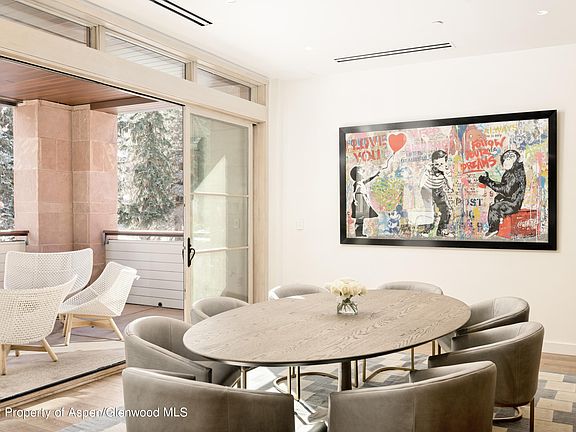 This centrally located 4 bedroom penthouse style condo overlooks Wagner Park and enjoys views of Aspen Mountain. The open floor plan features a spacious gourmet kitchen, dining area, living room, office, den, four en-suite bedrooms and an outdoor covered patio. There is elevator access from the two garage parking spaces directly into the foyer of the residence for added convenience. Ideally located just a few blocks to the gondola and all the amenities of downtown Aspen.