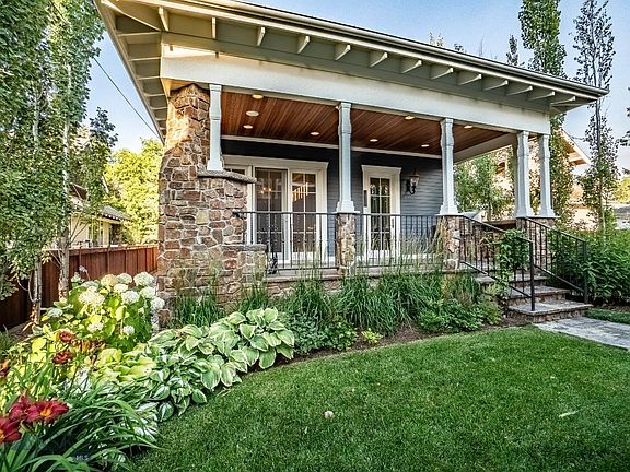 Just 4 blocks from Bozeman's historic downtown, this home was completed in 2013 and designed to emulate an original historic Bozeman home. No detail was missed including geothermal, solar, smart lighting control, radiant in-floor heat, central air conditioning, and multiple fireplaces. The floorplan includes a spacious gourmet kitchen, beautiful formal living room/dining room combination, oversized laundry room with study area, and den/office all on the first floor. The upper level includes a master suite with a steam shower, clawfoot tub, two walk-in closets as well as an additional large bedroom/flex space. The high ceilings of the lower level welcome you to an inviting family room with woodburning fireplace, wet bar and two additional bedrooms and bathroom. Enjoy the evenings sitting outside on the covered patio by a roaring fire, complete with a built-in BBQ and beautifully manicured yard. The finished room above the garage is plumbed for potential addition of a bath/kitchenette.