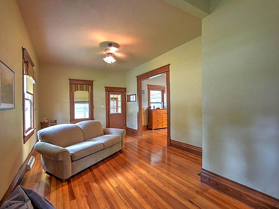 This is one gorgeous home that has been recently renovated! Beautiful custom kitchen cabinets by Planks Cabinet Shop with lots of sliding drawers, corian counter tops and stainless steel appliances Open kitchen concept with a breakfast bar. Grand hardwood floors in the living room, dining room and master bedroom. Tall ceilings make the rooms look even larger. Very private patio out back and enclosed front porch for easy entertaining! Master bathroom has been updated with new cabinets that are soft closing and granite counter top. 24 x 24 garage, vinyl fence, and you could finish the basement for a third bedroom. Nothing to do but take advantage of this beautiful home and move in!