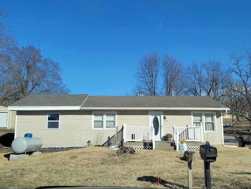 Great small town living! This level ranch home is located just off the square on a corner lot in the town of Maysville. Lots of updates throughout include flooring, paint, bathroom, and a 400 square foot addition with primary suite and full primary bath and huge closet. The eat-in kitchen includes dishwasher and gas stove along with refrigerator that is just 6 months old. There is a large deck on the front and a patio with privacy fence in the back. The home and garage have vinyl siding. Garage has 2 doors and can accommodate 2 vehicles. Seller is in the process of painting the living room, 2nd bedroom, and laundry room so there are no photos yet of those rooms.