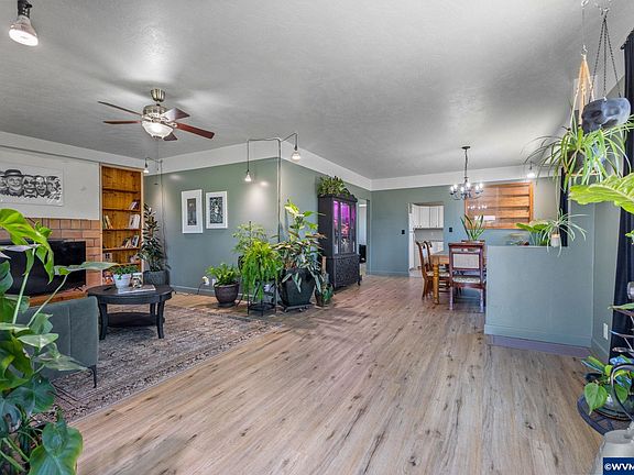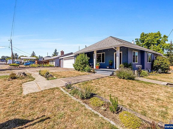 Nicely updated and on a corner lot! Large living and dining room with LVP flooring, vinyl windows, new interior paint. Primary suite has walk in closet, bathroom with soaking tub and dual shower heads. Heated mirror and vent fan is bluetooth speaker. Basement has utility room and lots of possibilities. Oversized garage with workspace, covered wood storage and large back yard. Sit on your covered front porch and watch the world go by.