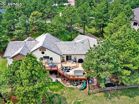 Welcome to this stunning, beautifully updated, custom ranch nestled in the trees on over half an acre situated on a quiet cul-de-sac. With over 4,000 sq. ft, this home boasts 4 bedrooms (5th non-conforming) and 5 bathrooms, and a large 3 car garage. Inside you are greeted by a bright and airy family room with soaring vaulted ceilings and windows galore! Open to the family room, is a formal dining room, and a beautifully appointed, updated kitchen with natural stone counters, high-end stainless-steel appliances, and built in table. Step outside onto the large deck, overlooking a partially fenced oasis and acres of open space, with a built-in hot tub, perfect for a quiet night at home or hosting a large gathering. Down the hall from the kitchen is a powder room, laundry room, and awesome mud room for all your seasonal gear. Don’t miss the finished flex room through the garage! This bonus space (not included in sq. ft.) is perfect for an office, fort, hangout space, or anything you can imagine! On the other side of the family room, you can find the primary bedroom with fully updated 5-piece bathroom complete with free standing tub and large walk-in closet. Don’t miss your own private entrance to the sprawling back deck! Finishing the main level is a second bedroom with a large walk-in closet. Downstairs is currently being used as a mother-in-law suite with a lower primary bedroom with updated 5-piece bathroom, large family room with gas fireplace and built in wet bar, 2 additional bedrooms, and full kitchen with large pantry. Don’t need this much house? With 2 basement entrances, it could easily become separate living space for long term or short-term rental opportunities. This home offers: *AWARD WINNING D-38 SCHOOLS* NEW LUXURY VINYL PLANK FLOORING THROUGHOUT* REMODELED BATHROOMS AND KITCHEN* NEWER PAINT* FINISHED BONUS SPACE* LARGE CRAWL SPACE* BACKS TO OPEN SPACE* INCOME POTENTIAL* Do not miss out on an opportunity to call this one of a kind, Woodmoor beauty yours!
