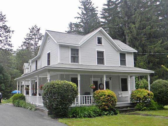 11+ ACRES ~ COUNTRY FARMHOUSE WITH STRIKING RENOVATIONS. Features hardwood flooring, Floor to ceiling brick fireplace, Modern kitchen w/granite counters and custom cabinets plus a formal dining room. 3 bedrooms plus a loft & study on 2nd floor with balcony overlooking manicured grounds. Office has gorgeous custom build ins. Covered front and side porch with 2 car detached garage and horse shoe driveway. 2 BARNS recently re-sided with water hook up to both barns for garage and loft over garage. One Barn has workshop and 2nd barn has 2 horse stalls. Private and Scenic trails all on 11.19 landscaped acres. Must see to appreciate.