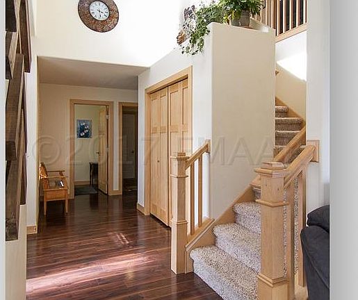 Fall in love with this custom 2 story fully finished home just mins away from Fargo/MHD! Walking distance to Mape School! W/ close to 3500 sq ft this home has it all! Enjoy the finsd fam rm w/ a beautiful wet bar, fp & surround sound! Walk down from the attch. fnshd/htd garage to the basement is a bonus! Upstairs offers 3 bedrooms including the private master suite with tray ceiling. The bonus room upstairs has hickory hardwood floors, amazing custom storage, & an office space w/ french doors that could be used as a separate office, nursery, game room etc. The meticulously landscaped yard will not go unnoticed. Sprinkler system, stamped patio & mature trees! 3 heat/cooling zones! Maple trim, doors and floors finish off this beautiful home. Options- Central Cass, Mapleton & W. Frgo school!