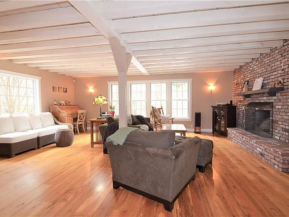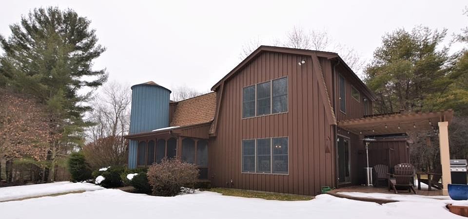 Feel like you're on vacation every day in this stunning two acre property in Harrisville! The winding drive leads you 300+ feet off the road to this sprawling home of over 3000 square feet nestled in the pines. An open concept floorplan provides a large living room with exposed beam ceilings, locally sourced/milled wide-plank hardwood floors and a huge brick fireplace for cozy nights. A lovely 12x25 atrium off the living room brings the outdoors in while remaining by the gas fired woodstove and leads to a small patio. Plenty of workspace and storage in this large custom kitchen with granite counters, stainless appliances, maple cabinetry and breakfast bar open to a dining room that can fit any sized family! A spiral staircase leads you to the second level where you'll find three bedrooms including an enormous master bedroom with tons of closet space and a private balcony. A spa-inspired bathroom with deep soaking tub, custom glass enclosed shower and double vanity is the finishing touch! There is a large pergola covered deck off the kitchen for entertaining, central air conditioning, newer windows and more. Lots of privacy here and not far from town. Don't miss this one!