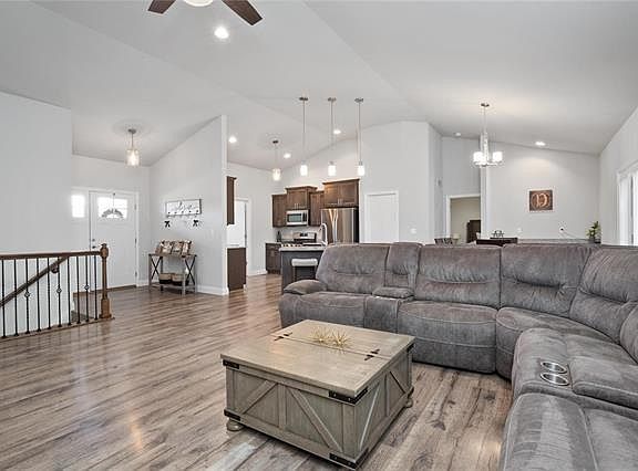 Elegant, open, and brand new describes this lovely ranch home. This split bedroom floor plan design offers a huge kitchen with a gas range, granite countertops; added bonus of butler pantry bar/wine fridge located in the dining room. and open to the living/family room. All bedrooms are a great size for all furniture and offers big closets, master bedroom with a walk-in. The basement is waiting for your finishing touch with 2 egress windows and a rough-in bath. Outside you will find beautiful landscaping in the front yard and extended backyard with a concrete patio and newly installed concrete stone retaining wall . MOVE IN READY!