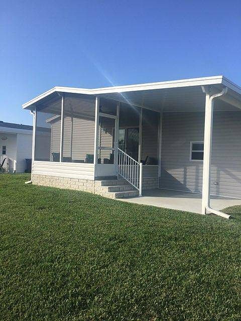 This popular 2022 Maria Model is a perfect floor plan! Open concept living, dining and kitchen flowing out to a raised screen room and an additional covered patio for grilling. The kitchen has a full closet pantry, an eat in bar that could hold 4 bar stools, and cabinets galore. The large main bedroom easily fits a king sized bed between the windows with room to spare, a large walk in closet and private bathroom with a double vanity and light up mirrors! There are 2 nice sized guest rooms, a full guest bathroom and a dedicated laundry room with extra storage and a new washing machine and dryer. This home also has a spacious carport for 2 and 12 x 12 shed with double doors perfect to house a golf cart and room for storage.