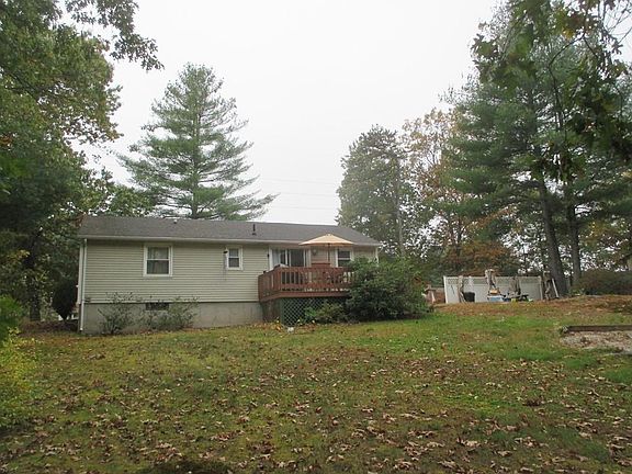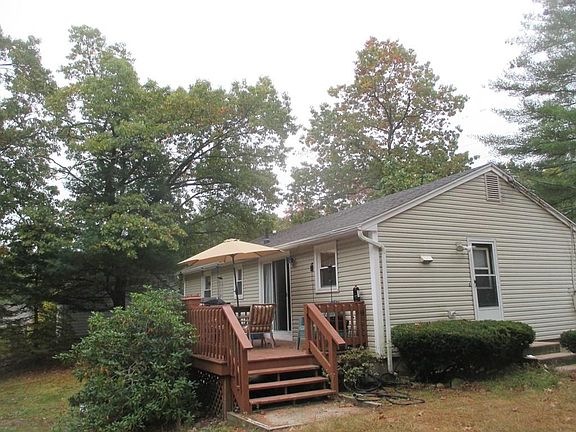 New roof installed 2016 (apo) tops-off this very neat 5 room Ranch perfectly along with many other recent improvements. Attractive exterior with newer tan vinyl siding with black shutters and all vinyl replacement windows . Great setting in popular and desirable West Holyoke location near Southampton line. Delightful 10 x 17' open rear deck off kitchen slider to private wooded yard with new storage shed. Originally built with 3 bedrooms but beautifully remodeled to open living/dining room floor plan. Updated kitchen cabinets, counters and ceramic tile floor. Great bonus and fun space in finished basement includes big rec-room, extra side room, laundry and plenty of walk-in storage. All electric and efficient utilities. City water and private sewer - Title V completed. Selected appliances remain - living room ornamental electric fireplace does not. Seller motivated and priced to sell. Can be available quickly.