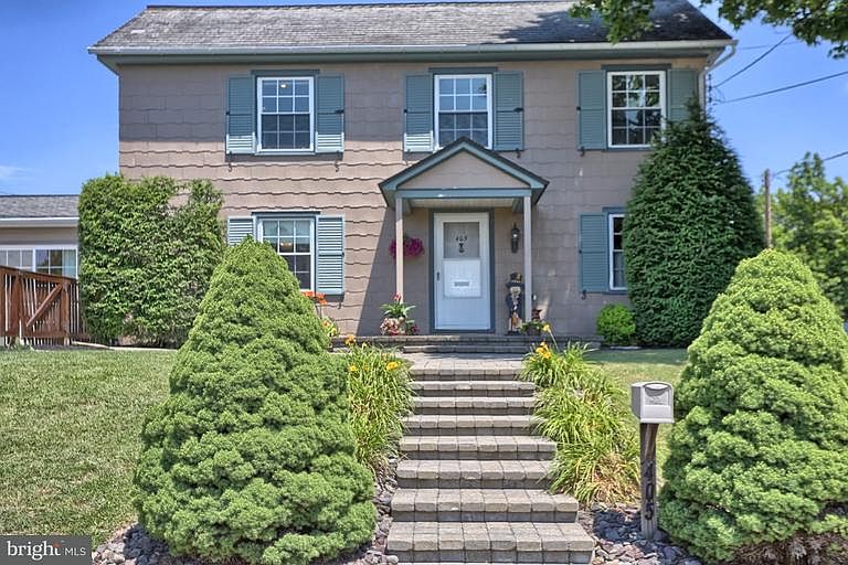 Welcome to 405 Spruce St in Hamburg Boro. This Hamburg Schools 3 BR, 2 full bath 2 story with a newer 1 story addition offers 2000 sf of finished living area. If you're looking for a blend of old world charm with modern functionality then this is the one. Enter the spacious living room with wide plank pegged hardwoods, built-in cabinet shelves and a brick surround non functioning fireplace. The original DR with oak hards could serve nicely as a breakfast room or study and adjoins the sure to please fully equipped kitchen with all appliances remaining. Just off the kitchen you'll find the 1 story addition which features bamboo floors in the open concept formal DR and main level BR with an adjoining full bath. This space would serve nicely for an in-law need. This area is heated with the included pellet stove fireplace. Take the stairs to the 2nd floor master BR with double closets and nice hardwoods. 2nd spacious BR and full stall shower bath completes the upper level. Don't forget to check out the 20' x 27' concrete patio great for summer grilling and entertaining. All this plus new(er) carpet, windows, professional landscaping, a partially fenced yard, move in condition throughout and beautiful views from this corner lot. Schedule your showing today.