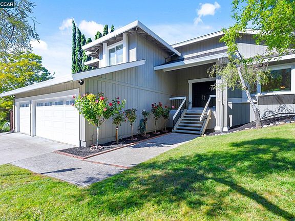 ENTERTAINER'S DREAM HOME!! PRIME LOCATION! Nestled at the end of a tranquil court with scenic open space in front of the home. Beautifully updated! Move right into this 4 bd|3 ba home. Soaring vaulted ceilings, new wide plank LVP, new carpet, and designer paint colors. Classic woodburning fireplace in the living room and a modern look gas fireplace wired for TV above in family room. Got toys? Three car garage with a pulldown ladder and lots of storage. Private backyard oasis has it all. Built in barbecue with bar seating, spacious outdoor dining area, raised planting beds, wisteria draped trellis. Citrus trees. Plenty of room for a play structure, pizza oven or even an ADU. Gated side yard with versatile refinished shed with lighting. Full bed and bath on the ground level. Updated primary and ensuite with a walk-n closet featuring Calif closet built-ins. Spacious secondary bedrooms, one with additional storage through closet. Highly sought after Valley High Neighborhood. Enjoy a Lafayette feel without the price. Easy commute access, near multiple freeways and Bart. Top rated Mount Diablo schools, including Valhalla Elementary. Near Paso Nogal dog park, hiking trails, great restaurants, and shopping. This lovely home checks all the boxes! Open house, May 18 and 19th from 1-4pm.