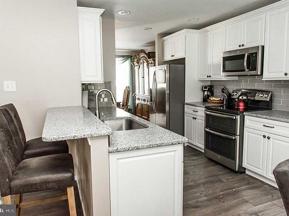 This is fantastic home, come see for yourself. As you approach the house you will appreciate the new front door and beautiful hardwood floors throughout the entryway and newly remodeled half bath. The dining room and living room make this a great home for entertaining with family and friends. Follow around to the gorgeous renovated Kitchen that opens up to the large Family Room with wood burning fireplace and ceiling fan. There is plenty of cabinet and counter space in the kitchen to make that perfect meal with your family. The kitchen also offers a stunning tile backsplash, SS appliances with gas cooking range, Quartz countertops, recessed lighting and a large pantry. The Master bedroom features cathedral ceilings, ceiling fan as well as a walk in closet. Looking for a place to relax after a long day at the office? The large soaker tub in the master bathroom is the perfect place with double sinks. The additional two bedrooms are large with plenty of closet space. Let's not forget the fully finished basement with high ceilings and an exceptionally large laundry room that leads to the two car garage. To set your mind as ease some systems are under 2 years young such as your HVAC and Hot Water Heater. This home won~t last long make your appointment today!