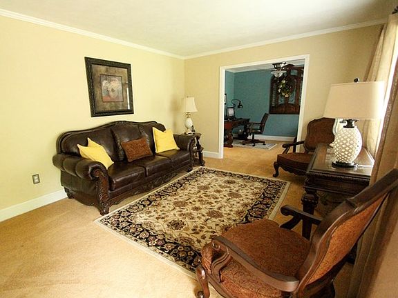 405 Sunset Drive is an immaculate brick home set back into a canopy of dogwoods and hardwoods. It has been completely updated with the highest quality products including solid surface countertops, new appliances, ceramic tile flooring, new carpets, stylish lighting, quality woodwork, custom tiled showers, and more. The double garage includes a workshop and built in storage areas. The outdoor spaces, including a patio with a pergola surround the back and overlook a running creek. The walk out basement is the bonus room den with a gas fire place, and a small sink, (small fridge does not convey), and opens out onto the back patio. You have to see this home to appreciate the quality and beauty. ( basement bar is not attached and doesn't convey)