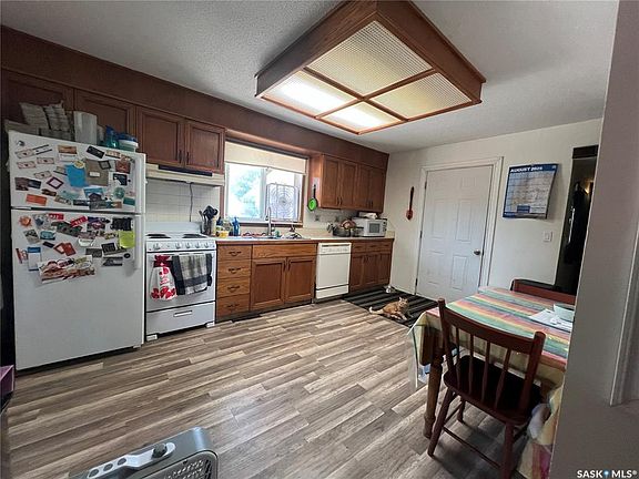 LOOKING FOR A PROPERTY TO MAKE YOUR OWN? How about 405 Sussex Avenue in Esterhazy? This property is nestled on a generous 71’ x 113’ lot—totaling over 7,600 sq. ft.—this charming property offers great potential for first-time buyers or anyone seeking a manageable fixer-upper project. Built in 1945, the home’s 742 sq. ft. layout provides a cozy space you can truly make your own.The property features a 24’ x 26’ two-car garage, split for convenience: one side serves as a workshop, while the other is dedicated to parking. A double asphalt driveway easily accommodates up to four vehicles, in addition to the two garage spots.Inside, the main floor laundry is set just off the kitchen/dining area. The kitchen is impressively sized, offering abundant cabinet space, a built-in dishwasher, stove, hood fan, and fridge. The home also includes a spacious four-piece bathroom, two bedrooms, and a comfortable living room that faces the street.Outdoors, mature trees surround the property, creating natural privacy. A rear deck offers a quiet retreat, perfect for relaxing or entertaining. The location is another highlight—just steps from St. Anthony’s Hospital and close to other key amenities.With its solid bones, ample parking, and desirable lot size, 405 Sussex Avenue is a great opportunity to start your homeownership journey. Contact your agent today to book your private viewing.