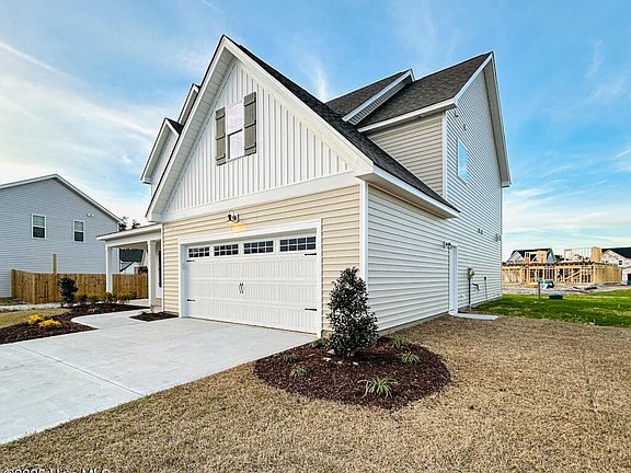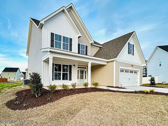 the Abbington by 70 West Builders. Stunning craftsmanship is in every nook of this cul-de-sac located home! Pulling up you'll see a large southern covered front porch - perfect for rocking chairs! - and low maintenance landscaping. Walking inside you'll enter into the wide foyer, which immediately lends into the formal dining room featuring large windows, a coffered ceiling and crown molding. Off the dining room is a butlers pantry which provides ample additional storage, and then you spill right into the heart of the home - the kitchen. Featuring stainless appliances, tile backsplash, a gourmet kitchen with upgraded quartz countertops and direct access to an adorable breakfast nook. Perfect for casual meals, entertaining and more! The kitchen has a large island, chimney style range hood, built in microwave, large single bowl sink, upgraded lighting and pendants! Best of all - it leads right into the family room. With large windows over looking your back yard (and covered rear porch!) this is the perfect hang out. The family room features built ins around the fireplace for storage and decor.There is a half bath downstairs along with a first floor bedroom that features a private bathroom. Perfect for house guests! Rounding out the downstairs you have an adorable ''Mud room'' are with a built in bench and wainscoting. Upstairs you'll find two additional bedrooms that share a full bath, a huge bonus room (15 x 15! AND includes a closet!) a home office/study with double doors, the laundry room, and the spacious master suite. The master features a trey ceiling, his and hers sinks, a walk in tiled wall shower WITH BENCH SEAT!, a massive walk in closet AND direct access to an ''exercise room'' which could be an additional home office, nursery, man cave, craft space - you name it! Enjoy the beautiful Carolina evenings and enjoy all that ENC has to offer!