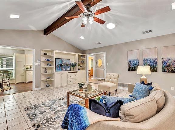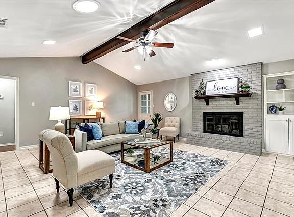 Remodeled, updated and move-in ready! This charming 3-bed, 2-bath home is nestled between two large oak trees and nicely landscaped front yard. Inside this gorgeous home you will find granite counters, redesigned cabinets, fireplace, skylight, decorative lighting, spacious epoxy-floor garage and quaint sunroom. Low E windows were also added for energy efficiency! Backyard perfect for entertaining features large stamped concrete patio with a majestic pecan tree and also a great shed for your extra storage needs.