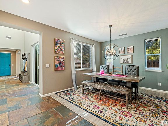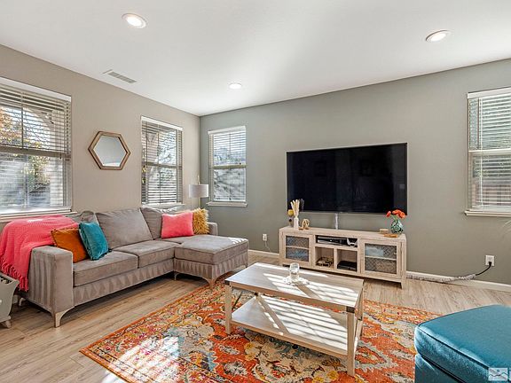 Discover this beautifully updated home featuring high ceilings, slate floors, and large windows that bring in plenty of natural light. The open floor plan includes a spacious kitchen with modern finishes, comfortable bedrooms, and luxurious bathrooms. Outside, enjoy a large patio, mature landscaping, and a courtyard perfect for relaxing or entertaining. Located on a corner lot, the property includes 2 Tesla chargers and has a view of Mt Rose from the front porch and in the living room., Furnishings negotiable. Full upgrades list and floorplan in the docs tab. Easy to show!