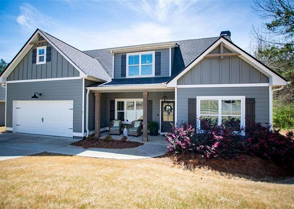 Craftsman style 2 story home with wood floors on main level, open kitchen, great room and breakfast room. Awesome kitchen with quartz counters, huge bar , stainless steel appliances, front porch and back patio. FP in Great Room, Primary plus 2nd BR on main level. Community Pool.Bremen city schools. Cpmmunity pool.