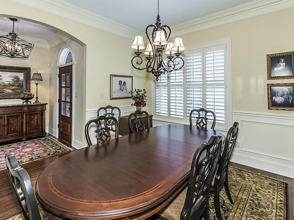Brick & Stone CUSTOM home with pebblestone driveway. Sits on a cul-de-sac. Beautifully finished w,extensive millwork from the deep crown & wainscoting to the quality cabinets by Dixie Kitchen in the kitchen & bathrooms. 10 ft ceilings down, 9ft up with a 2 sty fam rm. Great open flr plan. Large kit with a huge black center island & cream perimeter cabinets. Granite counter tops, stainless appliances, tile backsplash & a farmhouse sink. wood fioors thru much of main, plantation shutters, 8 ft interior drs. Master suite on main, 3 bedrooms up or 2 beds plus bonus. Other features incl: cove rear patio w'stained bead board ceiling, security sys,conditioned crawl space, 2 x 6 framing, upgraded insulation, floored attic for storage & a tankless hot water system. A must see!