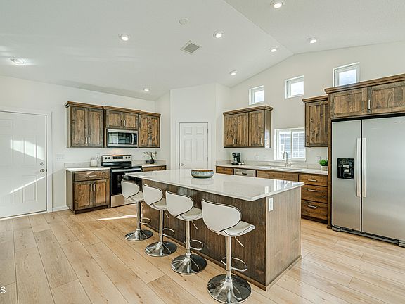 Open House Sunday 2/18 from 12:30-2pm. Welcome to this North Bismarck Patio Townhome. This is not your cookie cutter small patio home. With 1863 square feet on one level you will have plenty of room and no steps to contend with. The just completed full interior and exterior renovation means you won't have to do a thing besides move in. The exterior renovation included the following: roof shingles, siding, two exterior doors, overhead garage doors, some windows, partial driveway replacement and a new concrete back patio. The interior renovation included the following: fresh paint on all walls and the ceiling, all new flooring, updated primary bathroom, light fixtures and a completly new kitchen with all new appliances. Walking in the front door there is a large entrance foyer with a closet, then you will find two of the bedrooms and the full bathroom. Down the hallway you are greeted by the open main living area with vaulted ceilings that includes a large living room, dining room and a new kitchen with custom cabinets and quartz counter tops. The kitchen has a large pantry and an oversized island with room for seating. The Primary suite is tucked back in the corner of the house for privacy. The primary bedroom provides enough space to make it your own retreat. The attached 3/4 bathroom has a walk-in shower, vanity and private stool area. Next to the bathroom is the large walk-in closet. Laundry is located outside of the primary bedroom for your convenience. The backyard is fully fenced and offers a nice patio, large shed and plenty of grass area. The oversized three car garage is insulated, heated and has new overhead insulated doors. A new A/C unit was also just installed for the home. All this home needs is for you to make it yours. Agent/Owner. Call your favorite Realtor today to schedule a showing.