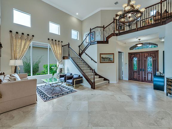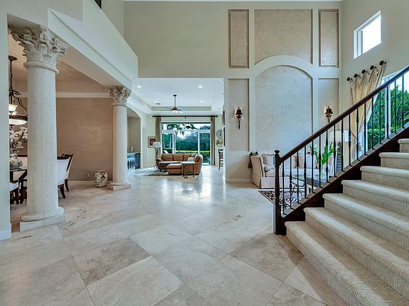 Captivating 5 BDR, 6 BTH highly desired Seville model home filled with natural light. This attractive residence offers more than 4,000 sf of comfortable, elegant living space, with a rare, attached 3 car-garage. Exceptional upgrades, voluminous ceilings, impeccable condition and a desirable open floor plan with the master and guest bedroom suites on the first floor. Wonderful combination of sophisticated and stately as well as comfortable and warm. More than 5,000 total sf. Situated on a private lot in a charming cul-de-sac street within the exceptional, recently renovated Country Club at Mirasol. Panoramic, unobstructed, lovely lake views from almost every room. Featuring large windows along the rear of the house and a prime eastern exposure, you'll enjoy beautiful sunrises and views