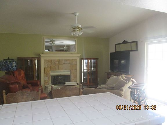 Great 4 bedroom home in a quiet neighborhood. Xeriscaped front yard. Kitchen open to lining room with fireplace with access to covered patio. Both bathrooms have quartz countertops. Master bedroom also has access to covered patio. Dual paned windows all with coverings. Ground mounted cooler. Three storage sheds .Fountain in front yard stays as well as the street light.Gun safe in hall closet stays. Tons of garage cabinets.Oversize carport for Rv/Boat parking. garage is 26x26 sq ft.