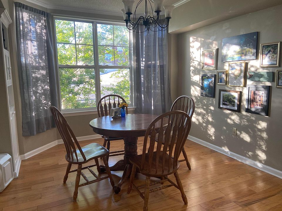 Great location in Fourth Ward across from 4th Ward Park and the Uptown Harris Teeter Grocery Store. Windows throughout this upgraded, spacious end unit condo, with a balcony and an awesome view of the Uptown Skyline. This 2 bedroom, 2 bathroom condo features: Hardwood floors in living room with a gas fireplace and dining area with custom built bookshelves, a bar area and extra storage. Kitchen has been upgraded with granite countertops and a stainless steel refrigerator, gas oven, microwave and double-drawer dishwasher. Spacious entryway, kitchen, and second bathroom have tile upgrades Hardwoods in both bedrooms and tile in both bathrooms Master bathroom has exotic granite countertop and an under-mount sink Large master bedroom has walk-in closet Tiled Balcony overlooking the Charlotte Skyline Washer and dryer included in the unit Gas grills on rooftop patio 2 parking spaces: 1 designated spot in covered garage and 1 in outside parking area (non-designated) Easy 3 block walk to center of Charlotte (Trade and Tryon Streets) for work and play 5 blocks to the Panthers Stadium, Knights Ballpark or the Hornets Arena Directly across the street from the Uptown Harris Teeter Grocery Store and 4th Ward Park Convenient to everything Owner pays for water, trash, and sewer. Tenant pays for gas, electric and internet.