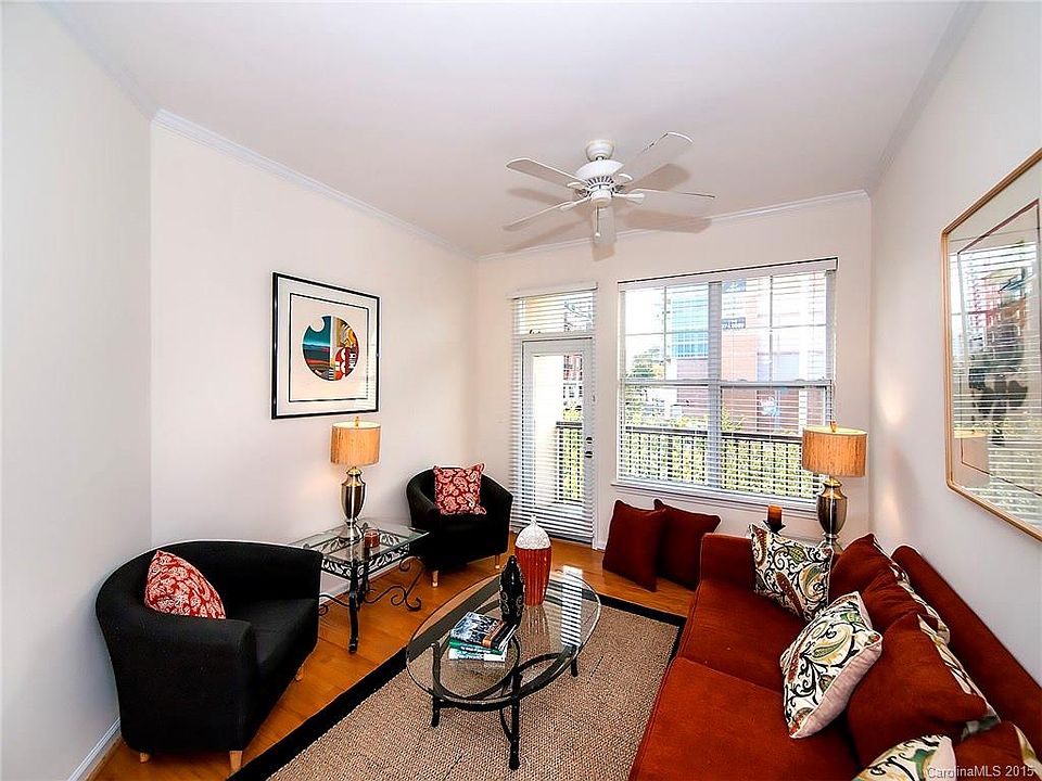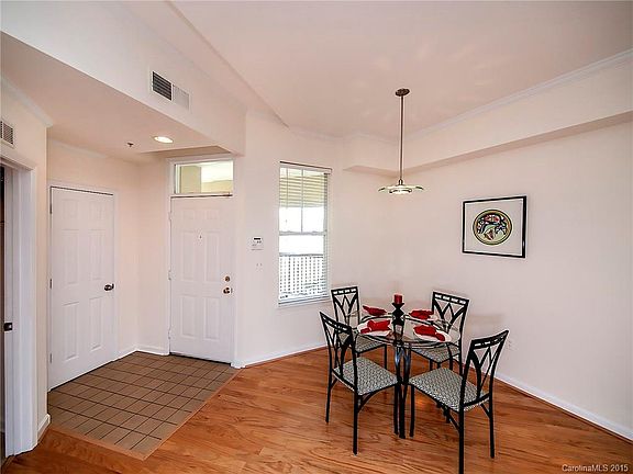 Top floor unit! Tall, smooth ceilings with recessed lighting in kitchen. Light & bright w/new granite counters, new carpet, new paint & new SS oven, microwave, refrig, sink and faucet. Updated light fixtures and BA mirrors. Balcony overlooks downtown! Large MA closet. Laundry RM. Shows like a brand new condo!! Private terrace & shared rooftop patio overlooks Charlotte skyline. Walk to Harris Teeter. Secured entry into parking garage and lobby. Radon remediation already installed!