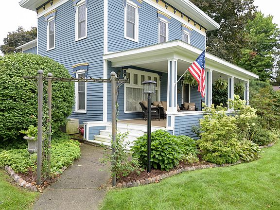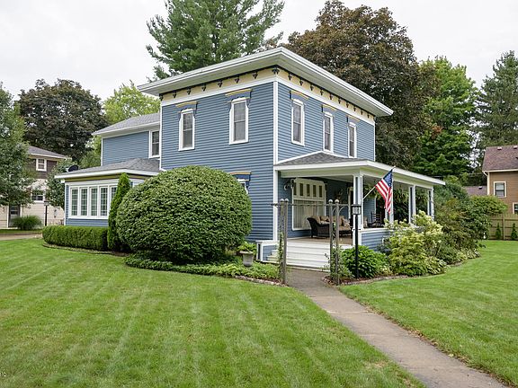 This beautifully restored & updated home sits on a great corner lot on highly desirable Bridge St. This historical home will greet you w/a stately front porch that leads you to the formal entry w/a fireplace, open stairway, & French doors to the living room. The ML features the Living room, kitchen, formal dining, den, bonus room & 1/2 bath. The UL features 2 full baths, 3 bedrooms & a landing w/built in cabinets. The seller has done a ton of updates that include, new roof, windows, granite counters, carpet in bedrooms, interior & exterior paint, toilets, vanity & sink in MB, light fixtures, garage door, electric to garage, screen doors, insulation, humidifier, fence back yard, & converted the sun porch into a room by adding insulation, ceiling & carpet. Playset included.