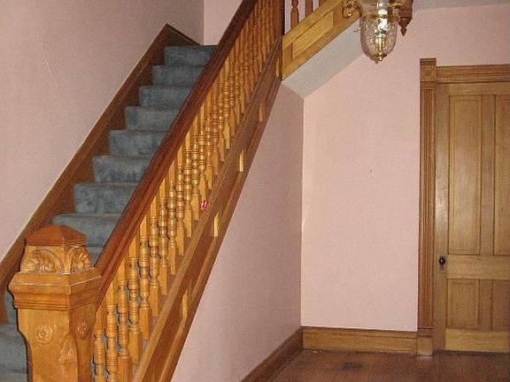 This 2 story victorian home has beautiful woodwork and hardwood floors. There is a parlor, a living room with a fireplace, dining room and an eat in kitchen. There are 3 bedrooms and bath upstairs.