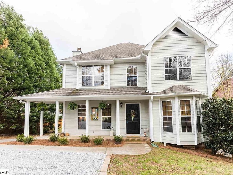 Charming two-story home in Augusta Road area with approximately 1600 heated sq. ft. PLUS two deck areas on either side of wonderful screened porch in back. Detached 2 car garage and fenced yard! This home features a large great room with wood burning fireplace, dining room with bay window (currently used as art room), Eat in kitchen and laundry on main level. Three bedrooms upstairs, with HUGE master suite, even an office area in master. Large walk in closet! There are recently refinished hardwood floors on main level; plus, granite countertops and stainless appliances in the kitchen. Lots of beautiful windows and light coming in. Parking area out front PLUS 2 car detached garage in back AND fenced in back yard! See associated docs for updates! This home is SO cute and wilt not last long; cannot find anything to compare at this price in this area. HURRY on this one!!