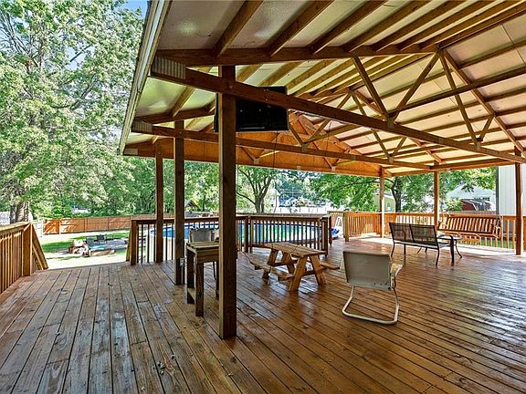 Small Town, USA - Clinton, MO! The great thing about living in a town of about 10,000 people is that you feel like you are in a differentworld! How about walking to the Historic Town Square for the antique car shows, town carnivals, parades & local fare? What if your new home was still inside city limits but only two miles from Truman Lake! Well this 4 bedroom, 2 bath, Open Concept Home with dark woods & stainless steel appliances is just that! Complete with an above ground pool with a one of a kind, freshly stained deck, hanging swing & handmade gate that opens almost the entire length of the pool deck. Did I mention it is attached to the back of the home? The back yard has a 5 foot privacy fence all around! A fire pit, horseshoes game, a wonderful children's playset, raised garden boxes & tons more roomfor whatever else you enjoy! Only blocks from the town square & yet all the amenities you'd ever expect in country living! A HUGE 4 car climate controlled outbuilding/garage(nearly 2400 sq ft), loaded with storage shelving, a separate roll door off the side for easy access to the back yard for your lawnmower & yard tools/toys! Upstairs is a space that would accommodate a yoga studio, an artist's dreamworkshop or even another living space (currently a very cool man cave with pool table, poker table & bar!). There is also storage that runs the entire length of the outbuilding attic space...If this isn't enough room for you then you could always finish the basement of thehouse that is currently just used for extra storage! Come check it out to see for yourself!
