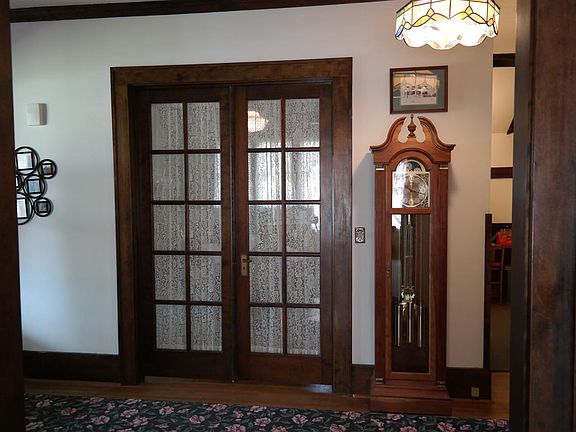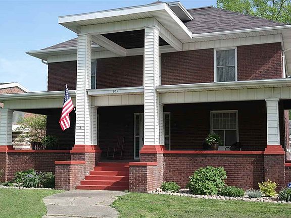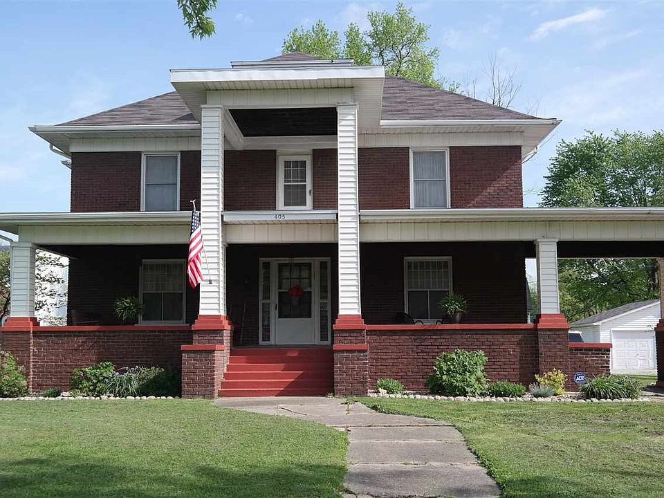 Stunning and one of the original homes built in Farmersburg! A grand entry with the original front door including stained glass on either side, as well as a large covered front porch make this home a must see! Beautiful original woodwork throughout including built-ins in the living room and french doors entering the dining room! Gorgeous staircase leading up to 3 bedrooms, with an additional room currently being utilized as a den. A laundry shoot is also located on the second floor with an additional shoot located on the main floor just off the kitchen. The home had a new boiler in 2003 and has a full basement which is unfinished and ready to make your own! Oversized 1 car garage attached to the house and a 2 car detached that was built in 1996. Stunning landscape on a corner lot is why this home is one to view!