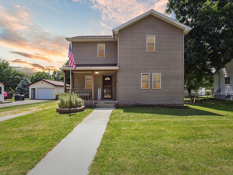 Introducing 405 W Main Street, a charming 2 story home situated in a quiet neighborhood in Mt. Morris. This 4-bedroom, 1.5-bathroom home is perfect for those seeking comfort and functionality. As you make your way inside, you are welcomed by beautiful hardwood maple floors throughout the dining room and kitchen and lots of natural light. The kitchen offers generous cupboard and counter space perfect for all your culinary needs. Across from the large dining room is a cozy living room and that leads to a first-floor bedroom. A half bath with laundry and a mud room which leads to the back deck rounds out the first floor. As you make your way upstairs, you will find three large bedrooms and a spacious full bathroom. This home offers great outdoor space with a cute front porch, a deck, a patio and fire pit, ideal for entertaining family and friends. The fully fenced spacious backyard features lots of green space for your pets and a garden. A large 2.5 (24X30) garage is perfect for all your vehicle and lawn equipment needs. This home also offers a full basement which is great for storage. Updates include: All 4 bedrooms and the stairs have new carpet in 2024 and the interior of the home was painted in 2024. New Dishwasher (2021), Washer and Dryer (2014), Siding, Windows, Roof and Furnace (2007). Furnace and thermostat are set up for central air- just need an outside unit and have it hooked up. Furnace and hot water heater serviced on 4/22/2024. Don't miss out on this opportunity to own this beautiful home that offers a great location, character, and beauty!