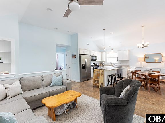 Just like new! Cozy 3 bedroom 2 bathroom beach box located in the heart of Kill Devil Hills just minutes away from the beach. At the end of this street you will find the beautiful Kitty Hawk Bay, offering gorgeous sunsets and a 6 mile multi use path. The home itself has many upgrades such as dovetail soft close cabinets, granite countertops, glass by-pass shower doors, and a tankless hot water heater. The first floor includes the primary ensuite, walk in laundry room and covered dry entry. The second floor includes the living room,  kitchen and dining area with french doors leading onto the 34' long covered porch, as well as two additional bedrooms and a shared full bathroom. The property also includes a large car port, storage room, outdoor shower and fenced back yard. Home inspection and septic inspection have already completed. Schedule your showing today!