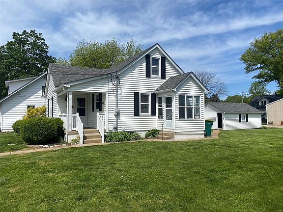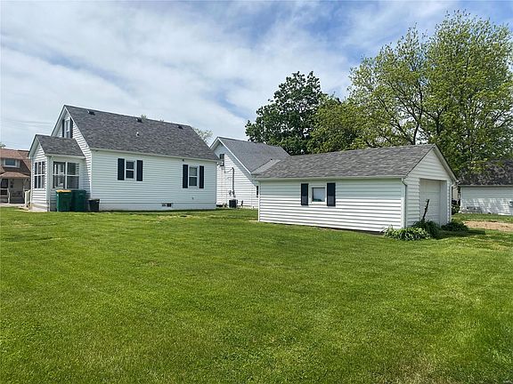 Ideal location in the heart of Millstadt! 405 W White is an absolute gem featuring an adorable front porch, 2 beds, 1 bath & 1 car detached garage. Living room offers tall ceilings & beautiful natural lighting. Laminate flooring throughout main floor. Kitchen includes gas range, refrigerator, dishwasher & access to charming 8x6 enclosed side porch complete w/ ceiling fan-perfect for enjoying morning coffee or relaxing w/ a book. Spacious bedroom & remodeled full bathroom on main floor w/ new tub/shower combo in '19 & new ADA toilet in '23. 2nd bedroom is upstairs & includes window unit A/C (new in '19). Washer & dryer included. Tons of upgrades in 2019 including NEW ROOF & SIDING on house & garage, all basement windows replaced, ducts cleaned, fresh paint throughout entire home including basement walls, floors, & ceiling, garage door & trim, & exterior foundation, outlets & covers, shutters, gutters, downspouts, & some fascia.