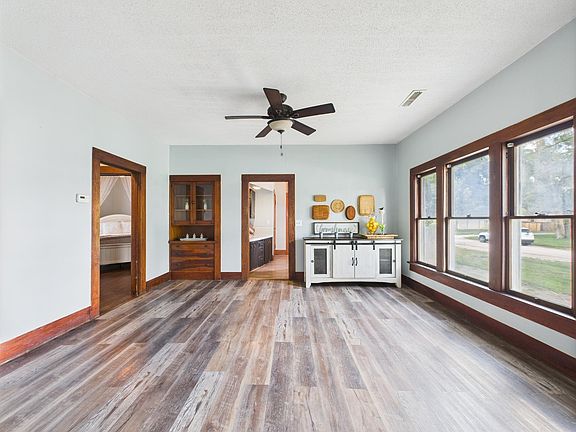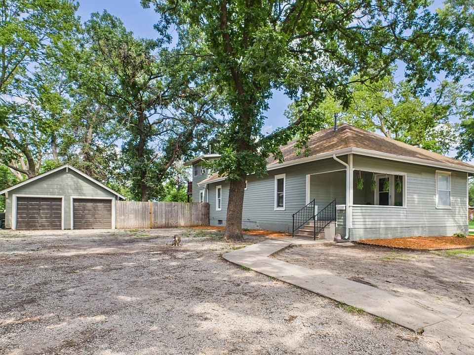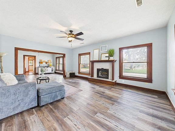 Rural living at its finest! This beautifully updated home sits on a large fenced corner lot and features fresh exterior paint, original woodwork, and tall ceilings. The main floor offers an updated kitchen with antique-finished cabinets, a formal dining room, a cozy living room with fireplace, and a versatile flex room that opens to the back deck—perfect for entertaining. Two bedrooms, a full hall bath, and main-floor laundry provide convenient, functional living. Upstairs, the spacious primary suite includes abundant windows, a full bath with vanity, a huge walk-in closet, built in storage/closets and a private deck. The basement includes a freshly painted bonus room with an egress window—ideal as a fourth bedroom or additional living space. The detached two-car garage has a new roof and updated electricity. Recent upgrades include five new windows and a sliding door (2024), updated electrical, and roof repair/replacement in 2025. A perfect blend of rural charm and modern updates!