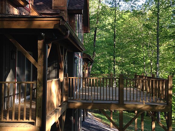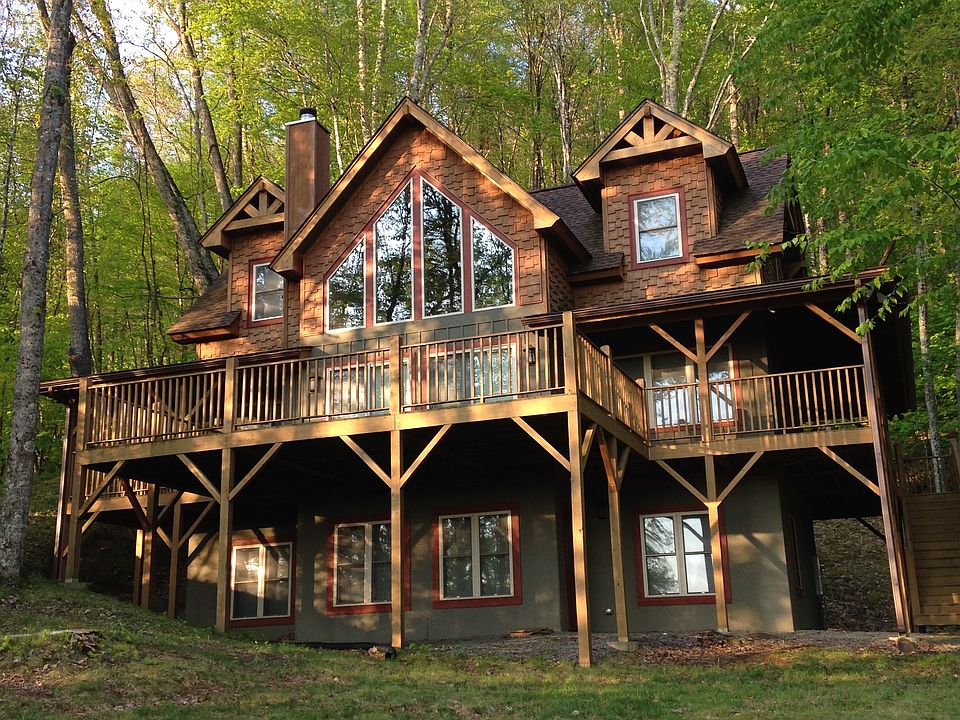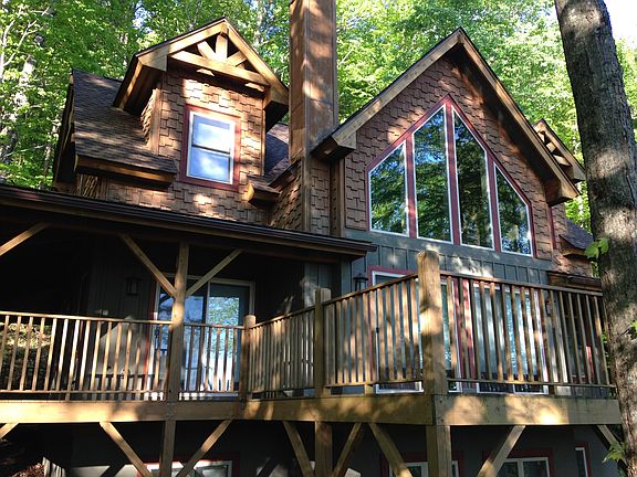 Beautiful chalet home with fantastic mountain views, high elevation & beautiful craftsmanship; architecture & design that reflect functional & aesthetic considerations using lots of windows, stone, wood & granite; large dormers; vaulted ceiling, wood burning-stone fireplace; Spacious Kitchen with breakfast bar; full walk-out basement is completely finished and can be used as a guest suite with master bedroom and full bath in addition to two separate living areas (for a total of 4 beds/3.5 baths, 2550 Sq Ft including basement); Gorgeous home with a high degree of craftsmanship and quality materials