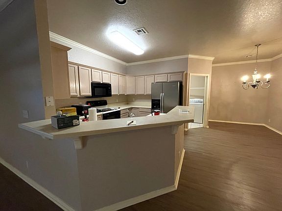 Two car garage. Fenced area for small pet. Open floor plan, new flooring throughout. Gas fireplace (great for power outages). 2 Bedroom, 2 Bath with Office that can be used as 3rd bedroom. Master has en suite and a private deck that overlooks beautiful treed area with creek. HOA cost included in rent. Pool, clubhouse and basketball court. Nearby bus stop for UCO! Quiet neighborhood but close to UCO and shopping. Renter responsible for all utilities which are Water, Sewer and Electric with City of Edmond and OGE. One dog with non-refundable deposit, max weight twenty pounds. Refrigerator, Washer and Dryer included but if they break they will not be replaced by owner.